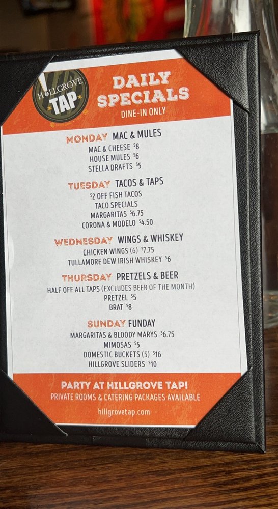 Introducing the menu at Hillgrove Tap, an American restaurant located in Western Springs, IL, offers a diverse range of dishes catering to various preferences. From appetizers like Boneless Wings and Buffalo Shrimp to salads like Avocado Salad and Caesar Salad, the menu offers a mix of flavors and ingredients. Burger options include the BeerCheeseburger and Diablo Burger, providing a satisfying meal for burger lovers. Customers praise the friendly staff, comfortable atmosphere, and extensive beer selection. Reviews highlight the standout dishes such as the sausage platter, beer cheeseburger, and sweet potato fries, showcasing the restaurant's commitment to quality and taste. With options for vegetarians, vegans, and meat lovers alike, Hillgrove Tap aims to provide a memorable dining experience for all guests.